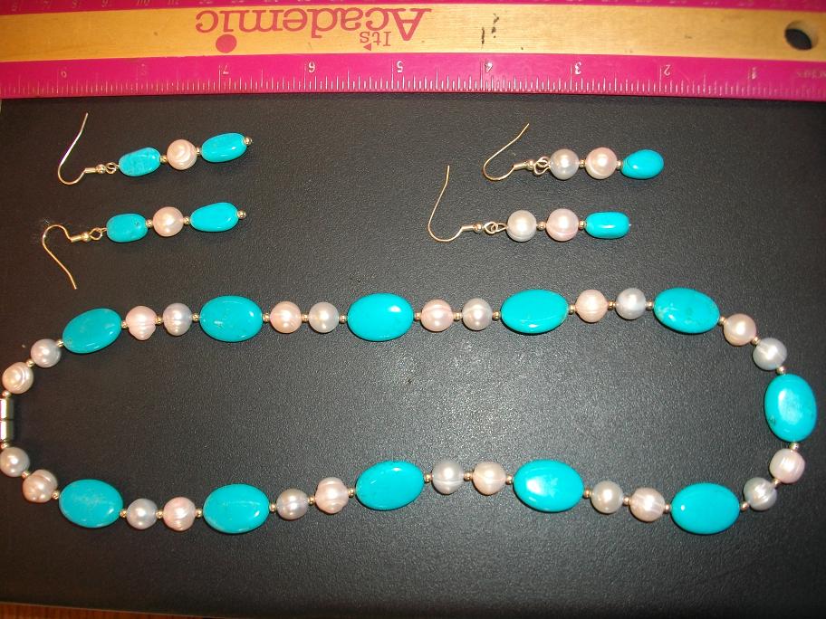 freshwater pearls that softens the turquoise. Twice plated silver spacers.
