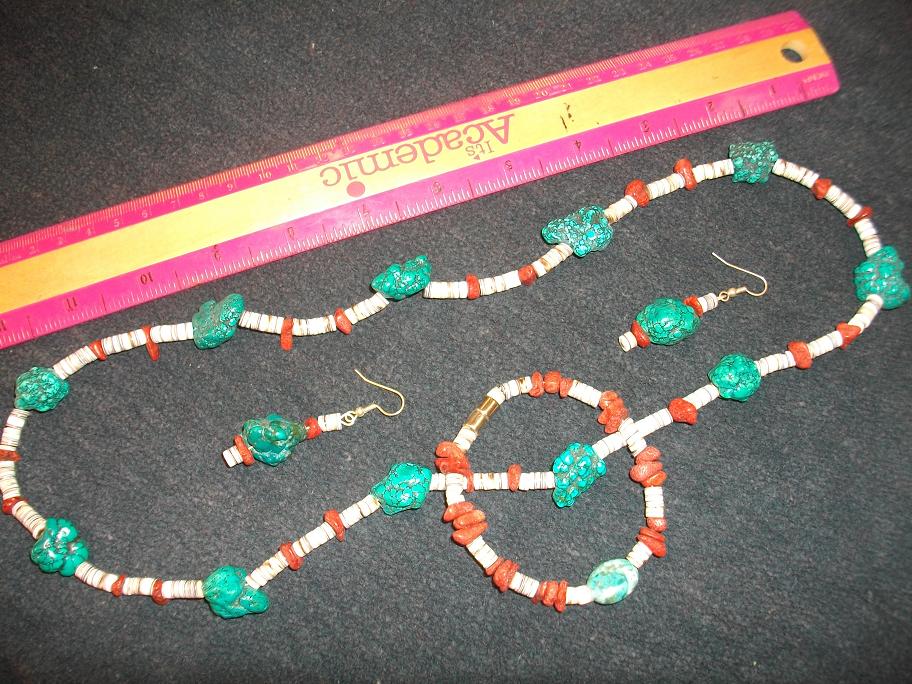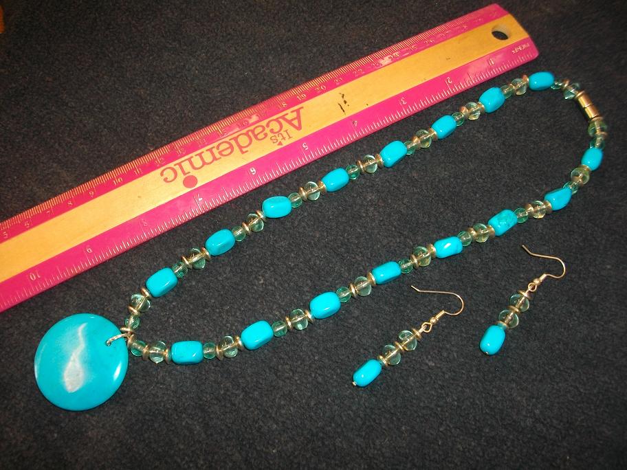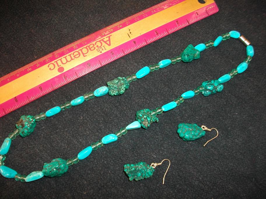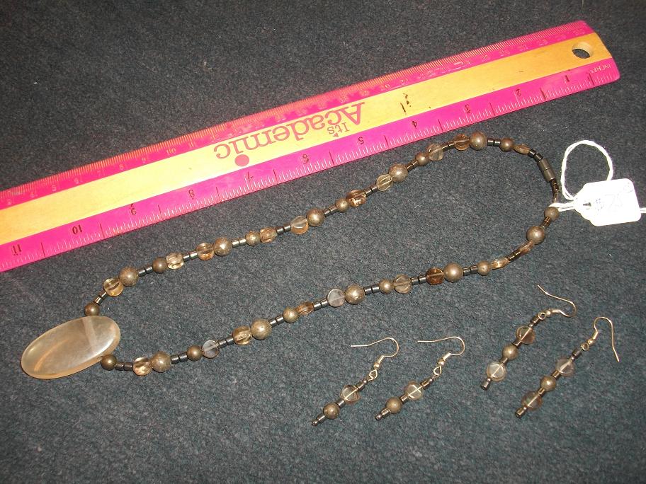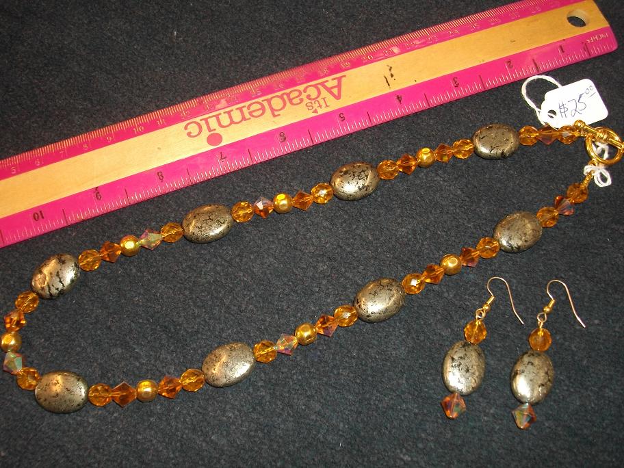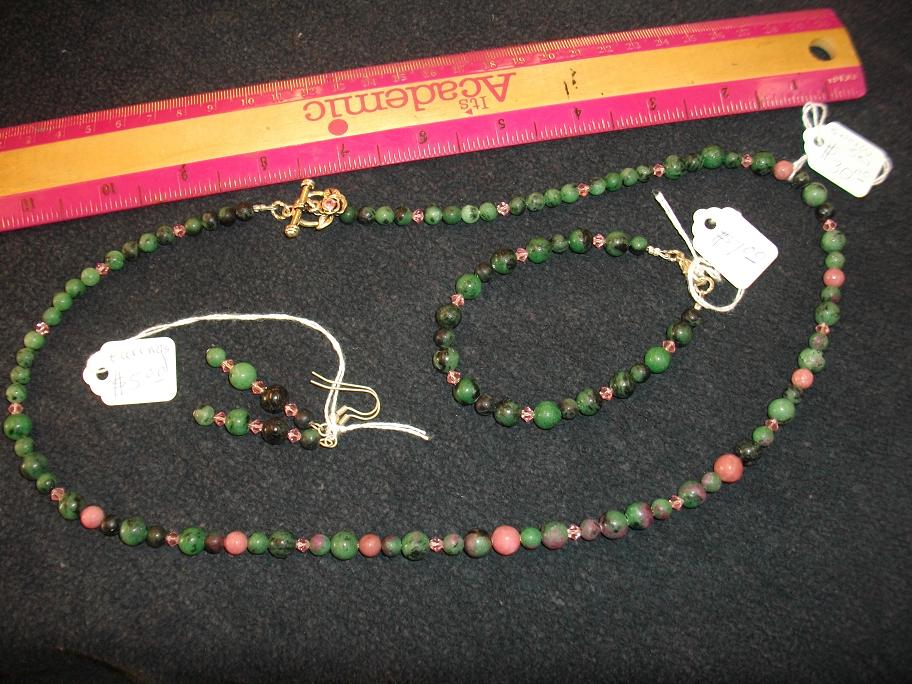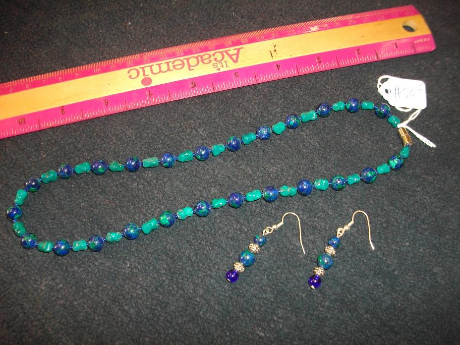 Approx 24". $35. 8 1/4" bracelet $7, matching earrings $5.