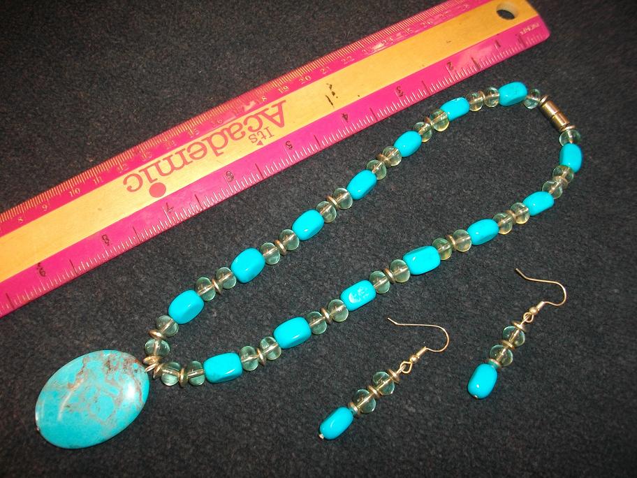 37. Chalk turquoise pendant 1 1/2" round. Chalk turquoise squared barrel.