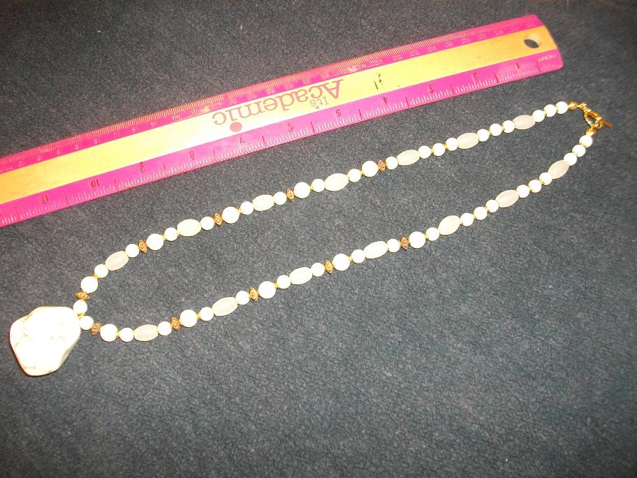 33. Creamy natural magnesite nugget focal 1". Cloudy quartz barrels.