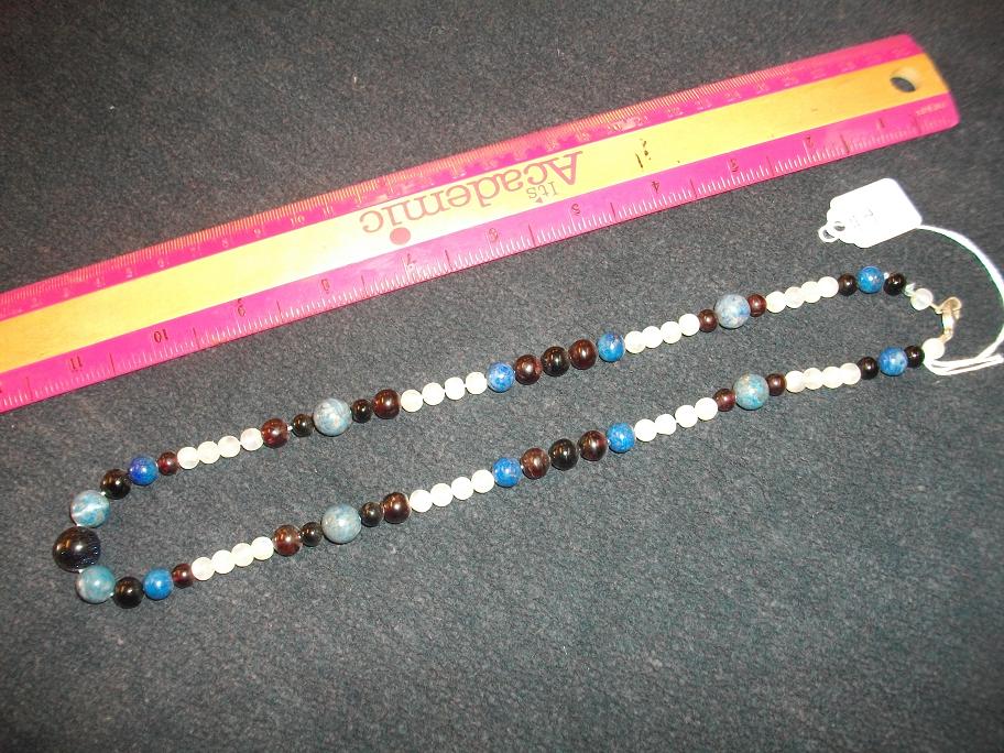 25. Lapis, larger denim lapis rounds, garnet and moonstone.