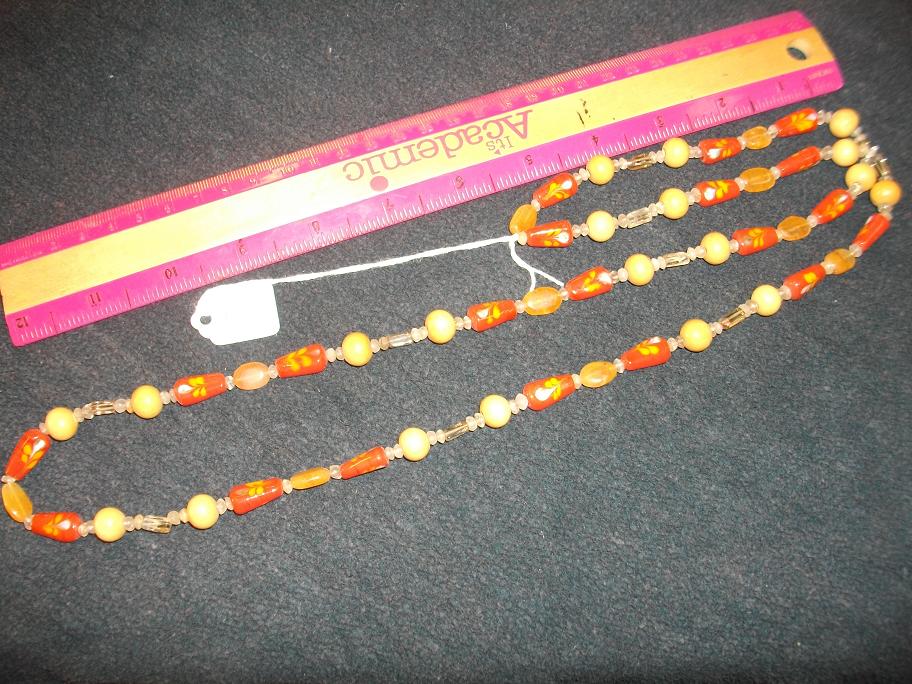 18. African trade beads (red and yellow flowers). Coral chunks and rounds.