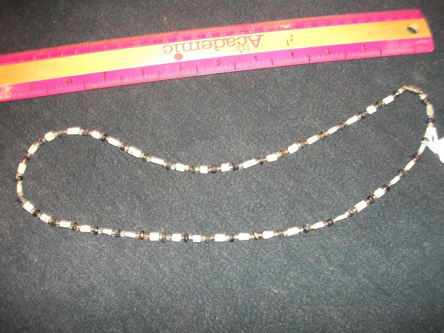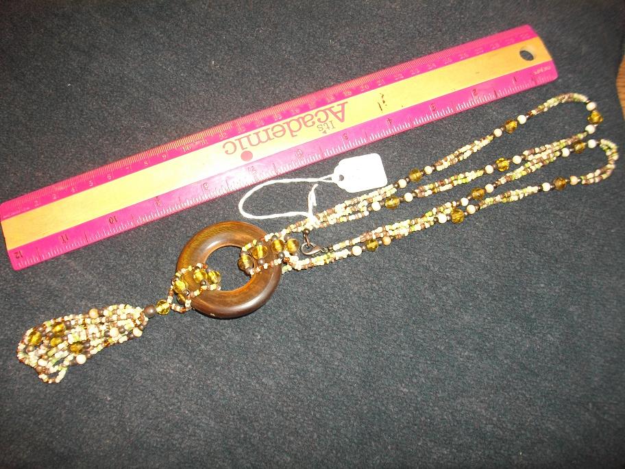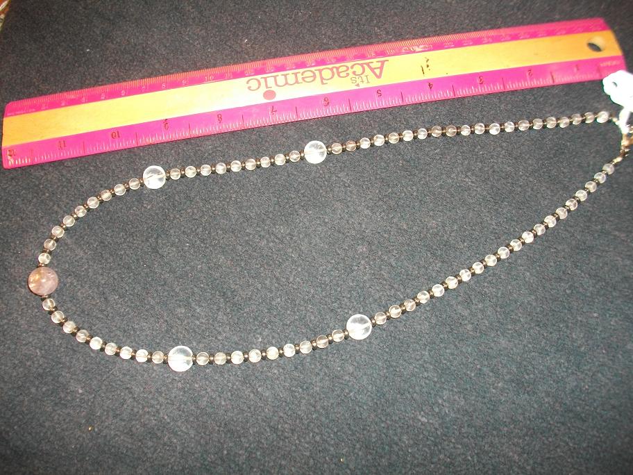 No clasp. Approx 25". $40. Matching bracelet $7. earrings $5.