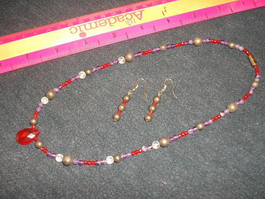 Smaller Amethyst rounds mixed with red faceted fire-polished.