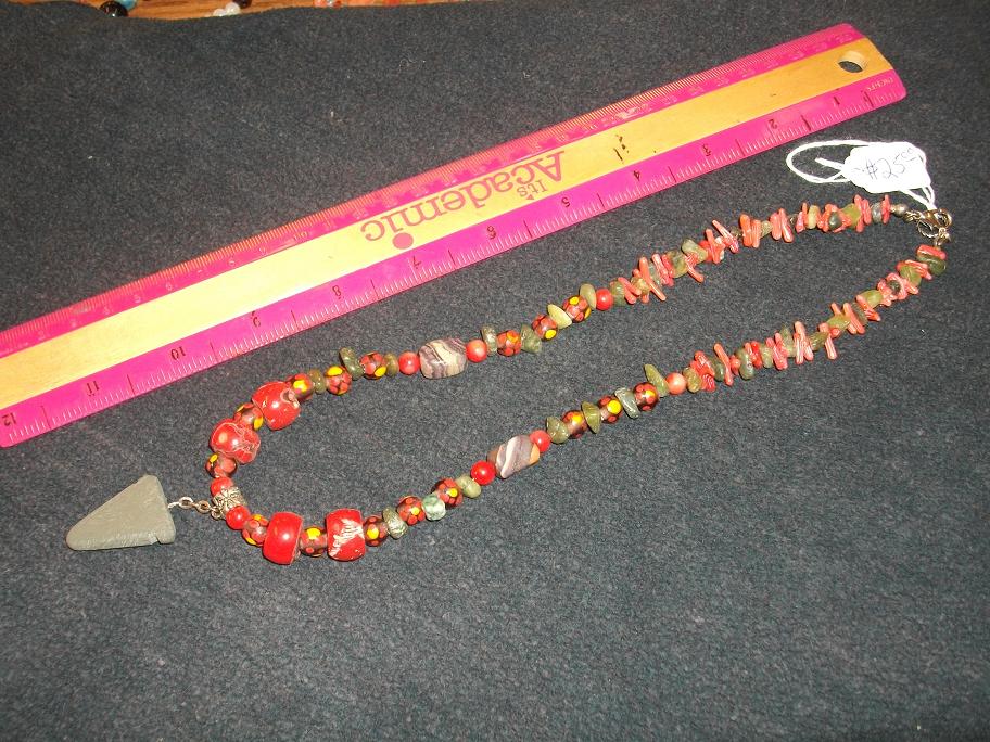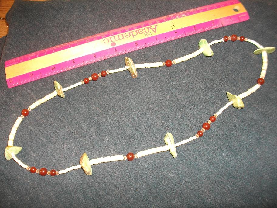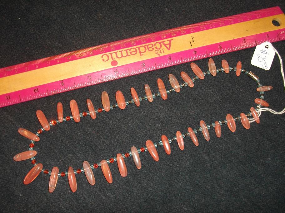 24. Another long piece folded over. Orange teardrop african trade beads.