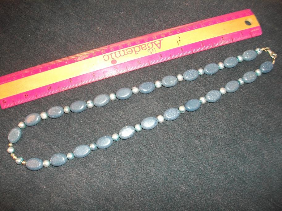 16. Natural blue coral ovals, dyed dk blue freshwater pearls.