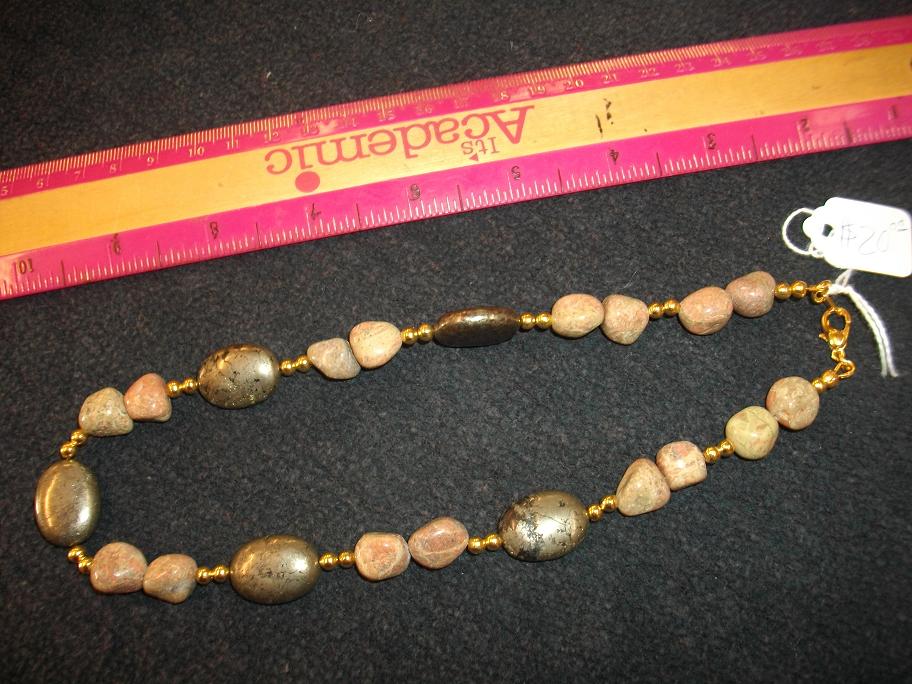11. Good sized pyrite ovals, creamy indian unakite nuggets and twice plated gold rounds.