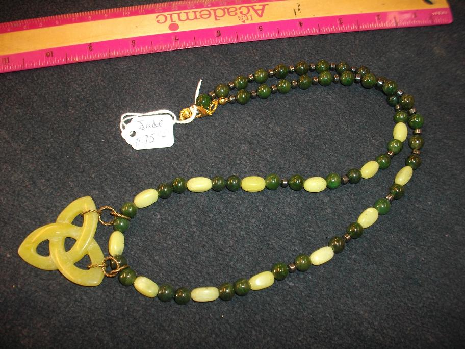 mixed with hemalkyte drum spacers. New jade celtic symbol pendant.