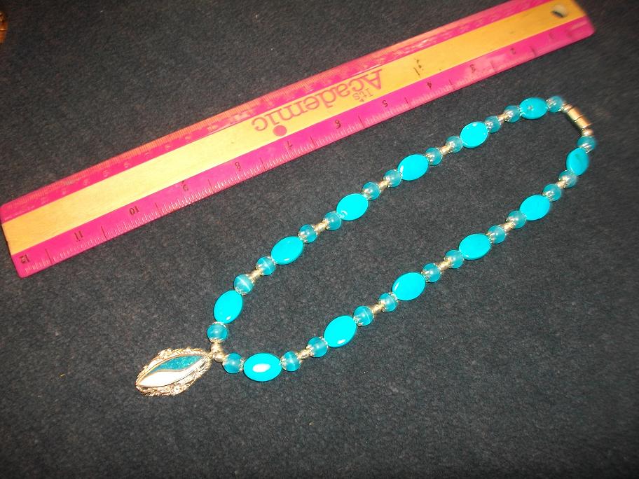 Magnetic clasp. Approx 16" + 1/1/2". $35. Matching earrings $5.