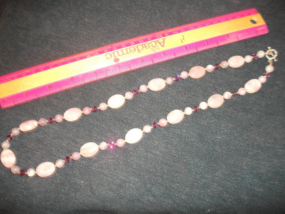 2. Rose quartz oval and lilac stone rounds. Intermingled with 6mm swarovski bicones and